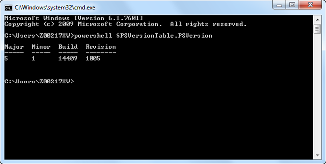 - At the command prompt, type powershell $PSVersionTable.PSVersion.