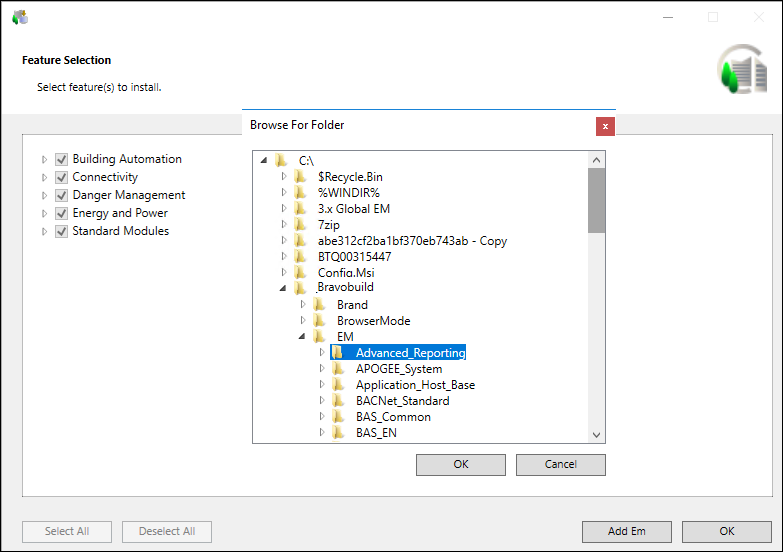 - Click Add EM. The Browse For Folder dialog box displays. Do one of the following: