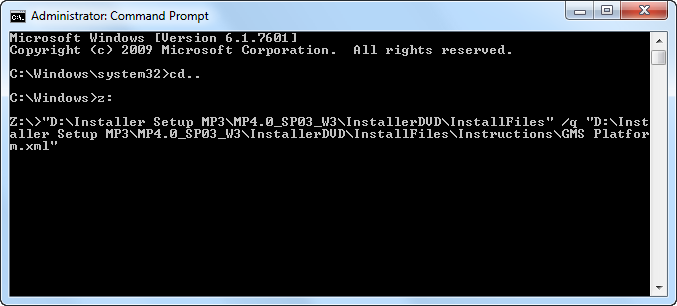 “<Full path of the file Gms.InstallerSetup.exe>” /q <Full path of the Silent Installation XML>
