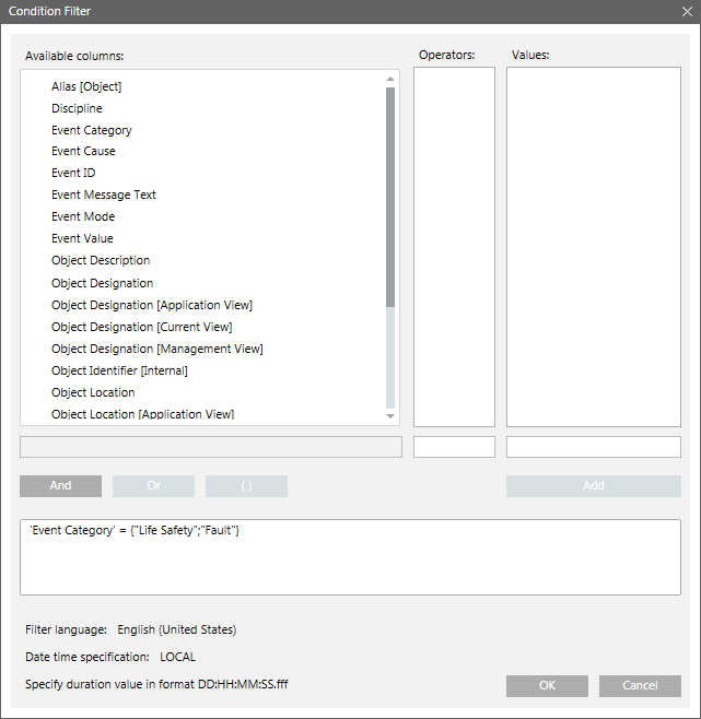 c. From the Values list, select Fault, press CTRL, and then select Life Safety.