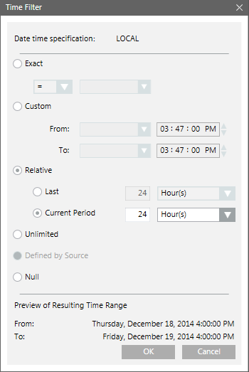 a. Right-click the Event Details table, point to Filters and select Time Filter. The Time Filter dialog box displays.