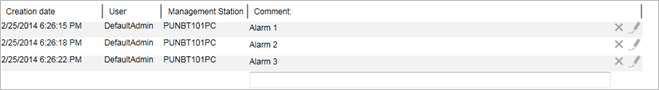 Creation date, User, and Management Station are read only. These are populated with information after you enter the comments and press ENTER. To add a new line to the comments, press ALT+ENTER.