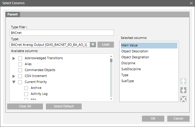 Type filter | (Displays only for an Objects table) Allows you to enter the object type description on which you want to filter the object types to be displayed in the Type drop-down list. For example, if you want the Type drop-down list to display all BACnet object types, enter BACnet as the type filter. |