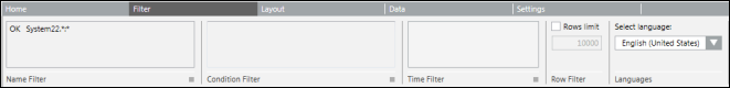 Name Filter | Displays the filter that is currently selected in the Name Filter list. You can type a name into this field. The valid format for entering a Name filter is SystemName.ViewName:Hierarchy.*, where.* is for displaying the child nodes of the selected object. For example, System1.Application View.Site.Building.Floor1.* | |