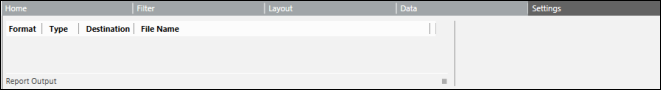 The Settings tab allows you to configure the output format and destination for a Report Definition.