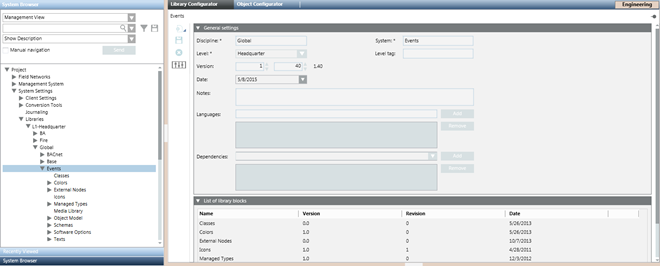 The Events library under L1-Headquarter > Global is a basic library provided by Headquarter that can be modified by Headquarter experts and Customer Support only.