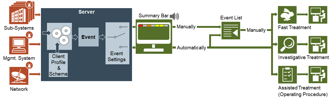 This section provides reference and background information for handling events in Desigo CC. For instructions, see the step-by-step section.