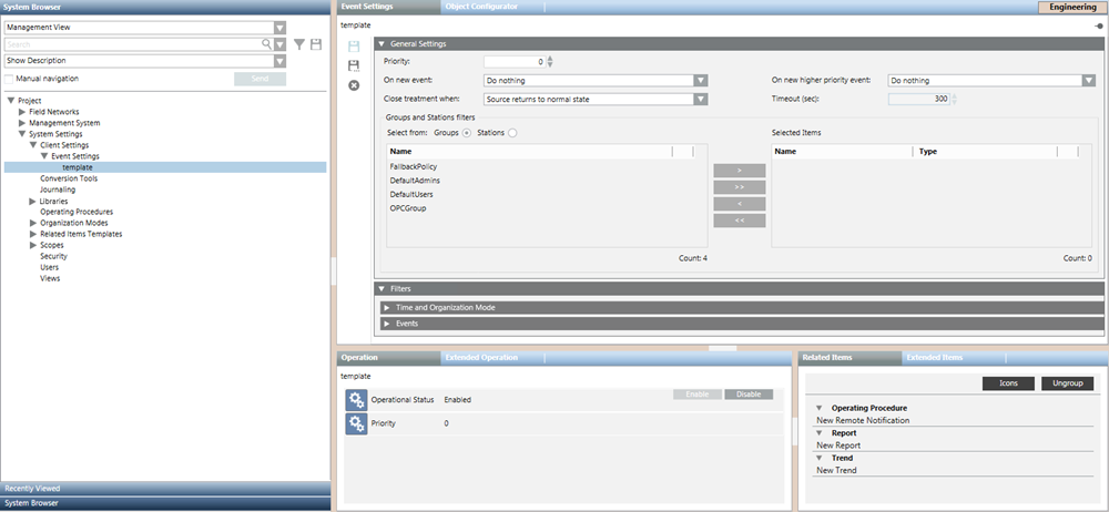 (Only for Save As) In the Save Object As dialog box, a. Select the main Event Settings folder. b. Enter a name and description. c. Click OK.