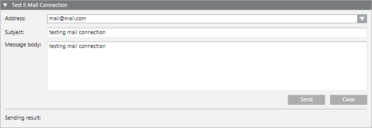 - This will send the test email message. The Sending result at the bottom of the expander shows the outcome and diagnostic information (for example,