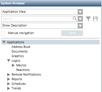 The Application View comes with installation and does not require any changes. If desired, you can customize it to a limited extent, by changing the Description of nodes in the System Browser tree. If desired, you can also associate a graphic with the root node of the view.