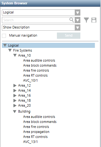 The logical view is not predefined and, if required, authorized technicians can create it to represent the subsystems logical structure, such as, area, section, zone, sensor. Operators typically use this view to locate where any issue or alarm occurred. Note that you can add only one logical view.