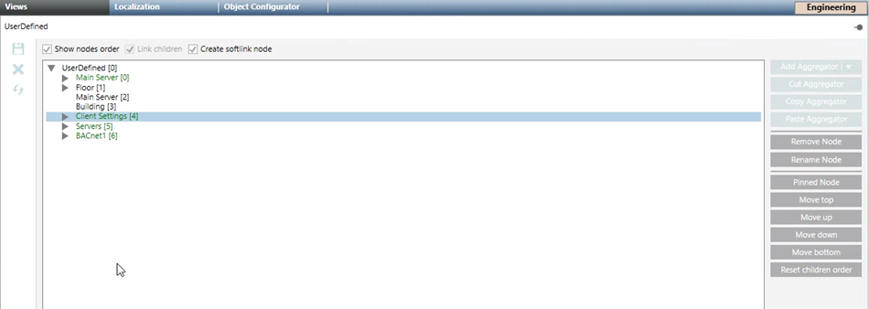 | - | Configure a specific order for child nodes to appear under their parent node. This allows arranging nodes to have fixed positions independent of the different languages, information display, or the creation of new nodes that affects the position of the existing ones. Note that when configured, this order takes precedence over the default sort order of name or description (depending on the System Browser view display: Description, Description [Name], Name, or Name [Description]). |