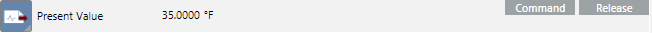 If you select multiple objects of the same type, for example, Analog Output, the icon next to the property name indicates this with a triangular symbol in the lower-right-hand corner. Clicking this symbol expands the table row to show all of the selected objects of the same type that share this property. You can then change (command) all Present Value properties for the selected objects at the same time. You can command a maximum of 250 objects.