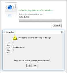Cause: Internet Explorer classified the web application as unsafe and denied access.