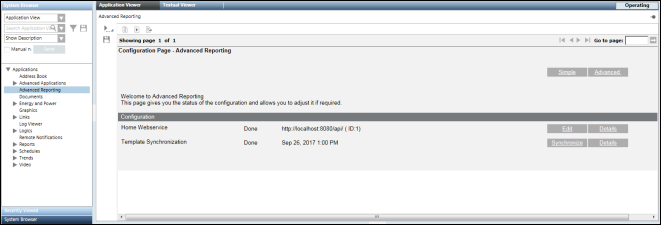 If you install Advanced Reporting extension along with post installation steps after the Desigo CC installation and project creation, then the post installation step of template synchronization is not executed, and you must manually perform this step using the Advanced Reporting Configuration page.