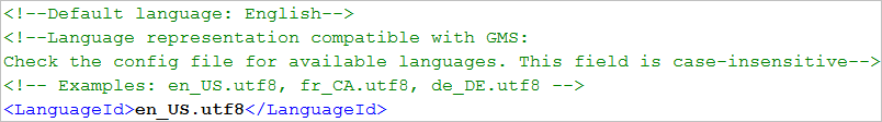 - In the <PageSetp> section of the template file, navigate to the <LanguageId> tag of the template file and enter fr_CA.utf8 within the opening and closing tags.
