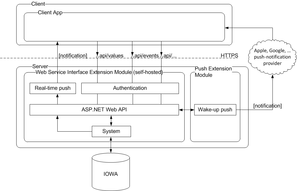 The Web Service Interface will be deployed as a self-hosted component. It’s an executable and can be commanded as any other IOWA manager.