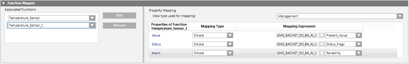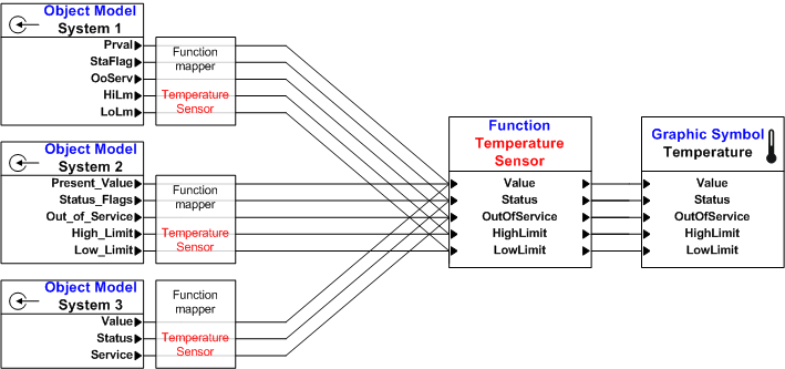 You must use the Function Mapper to assign all Functions associated with an Object Model. As a result, you must assign a Function, for example, Temperature sensor, humidity sensor, air quality sensor, and so on to an analog input of System 1. This assignment must also be carried out for Systems 2 and 3.