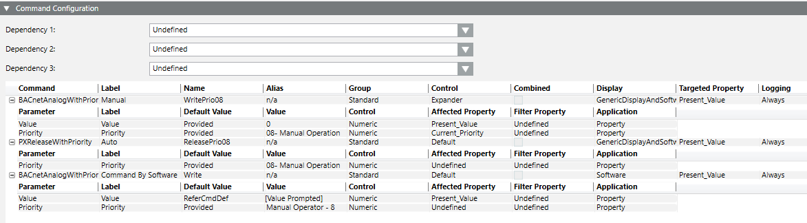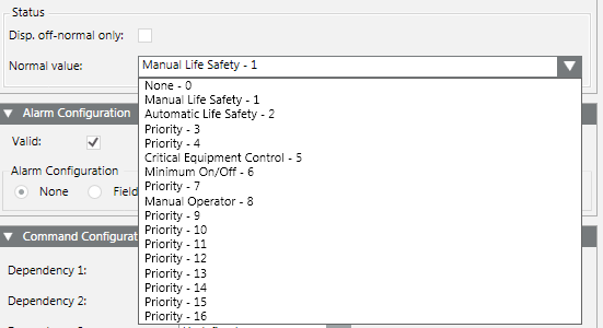- In the Command column, select status BACnetAnalogWithPriority.