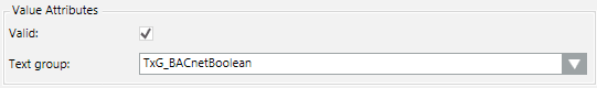 - Define the data point attributes under Value Attributes and select the text group.