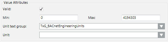 - Define the properties in the Value Attributes group box.