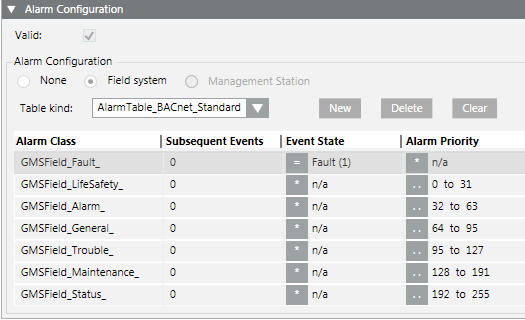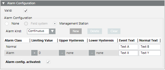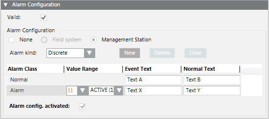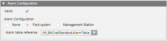 - Displays the Alarm Configuration expander.