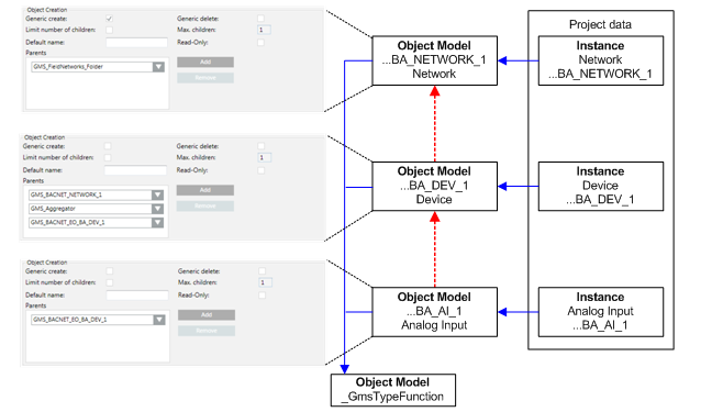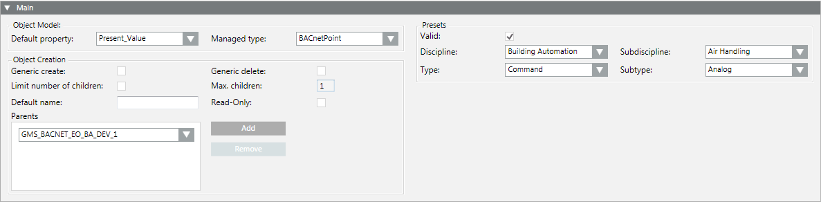 The functionality must be defined to operate properties. This may range from a simple Off/On to more complex functions to operate priority arrays for the various data types. For background information, see the Object Model Editor section.