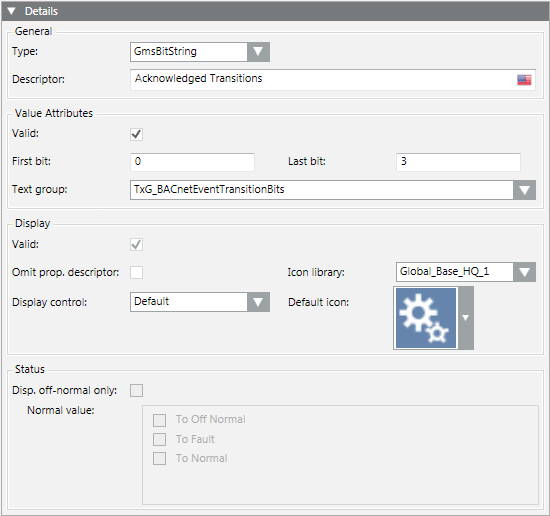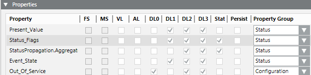 - In the Properties expander, select the property (for example, Alarm, Fault).