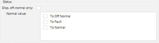 - Select the Status check box if you only intend to display the off-normal state (the function is defined in the Details expander).