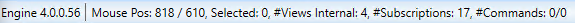 The status bar, when it is enabled from the View tab, displays current information about the version of the Graphics Editor, the position of the mouse, and the name of the object on the graphic canvas that is active and has the focus. Depending on the selection, additional information is displayed, such as the number of data points subscribed to, the number of commands, and internal views, etc.