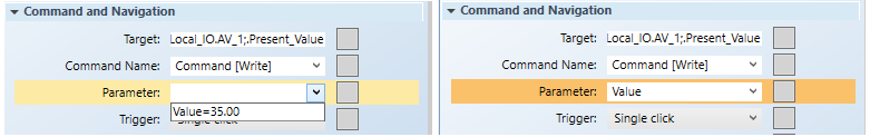 - Command with hardcoded parameter values. For example, a button that commands to a single value.