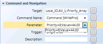 - Command with multiple command parameters across different command controls. For example, a Numeric control for the Value; a Numeric control for the Priority, and a Send button to command your Priority Array property .A user edits the value of all the parameters individually and then sends the command with all the values using a Send button.
