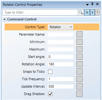 - From the Property View (Command Control Properties), expand the Command Control properties, and from the Control Type drop-down menu, select Rotator.