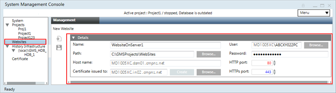 - The websites created outside the SMC are listed under Websites in the SMC tree. However, you cannot delete them using the SMC.