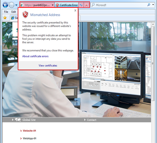Problem: After clicking the website or web application hyperlink, you cannot access the Desigo CC web page.