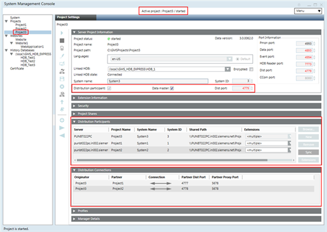- Repeat steps 7 to 15 to set up the third project, Project3, in distribution using a unique Dist port. Then add the distribution participants as projects Project1 and Project2 in the Originator project, Project3.