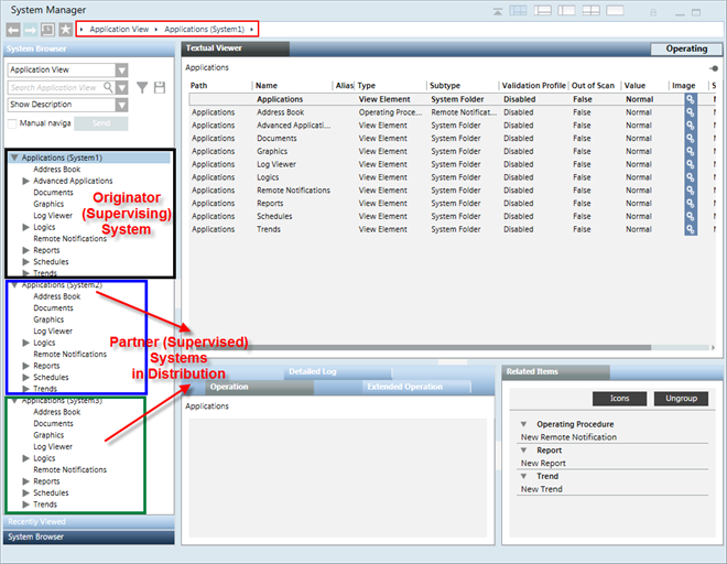 - Log onto the Installed Client. Both the projects are available in System Browser. You can now work with projects in distribution.
