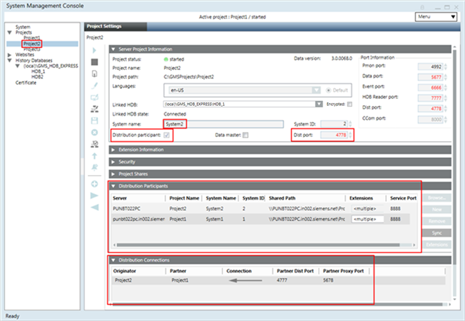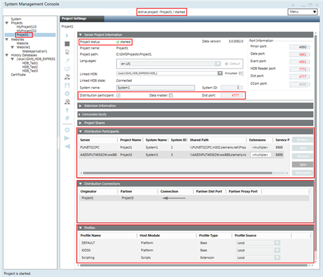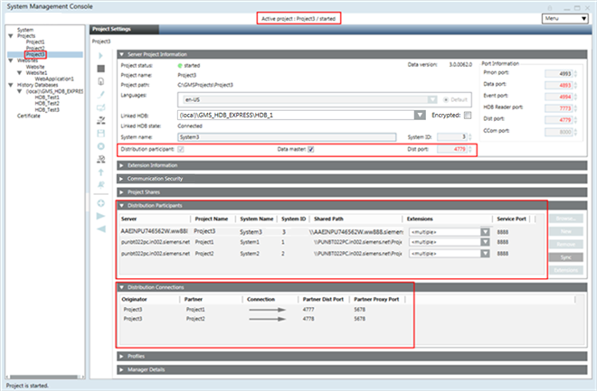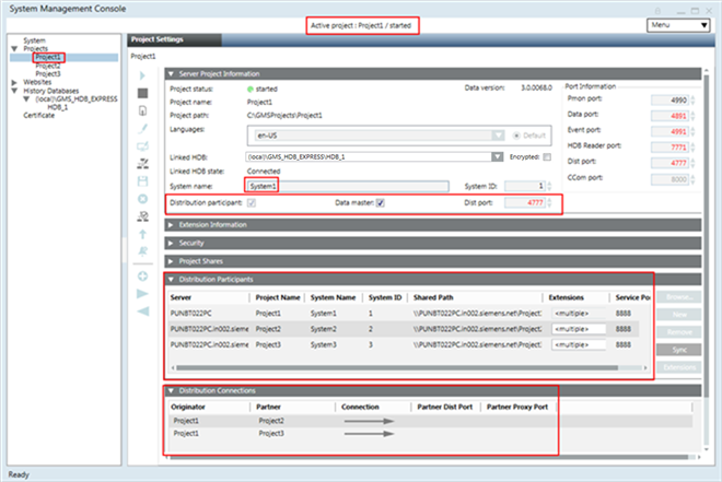 Stopped. For example, if you have three stopped projects, Project1, Project2, and Project3, you cannot set up an outdated project in distribution. You must first upgrade it to the current software version. - The projects in distribution have unique System Name and System ID.