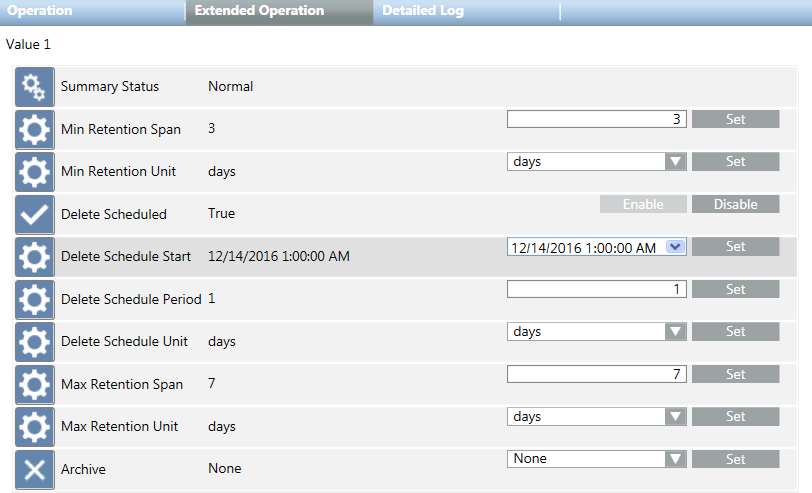 - Min Retention Span defines the minimum length of the time period and Min Retention Unit defines the associated unit.