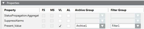 Scenario: You want to create a filter group and link it to a property to ensure that only those values that pass the filtering criteria are logged into HDB.