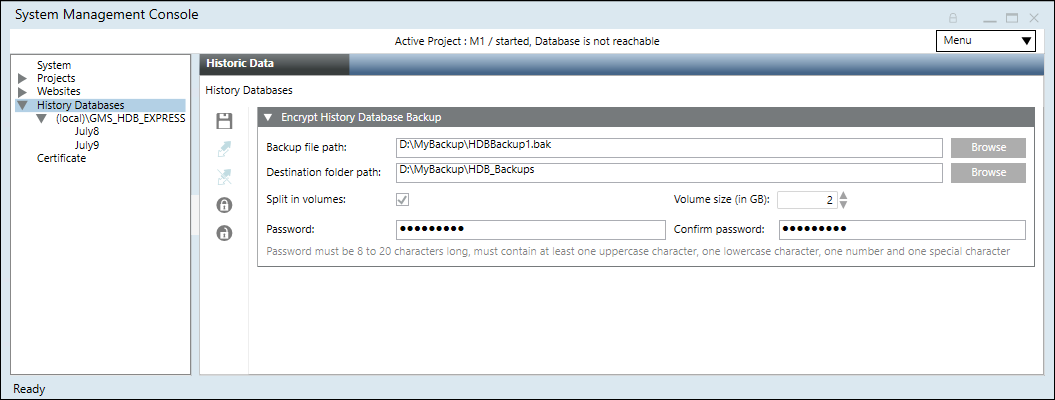 - You have sufficient disk space on the drive before you start history database backup encryption.