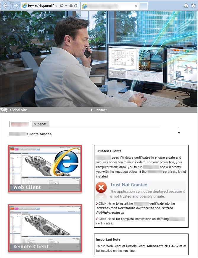 - From the Desigo CC web page, depending on the client type, do one of the following: