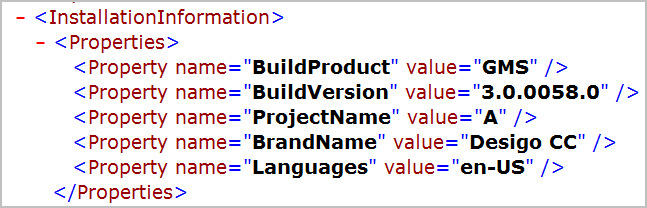 <Count displayName="Graphics" value="2" />You can use this to find out how many graphics, or printers or libraries and so on are configured in the project at the customer’s installed base. - Parent OM (for example, it displays the parent OM GMS_Library_Object for the OM GMS_Scripts_LibraryBlock)
