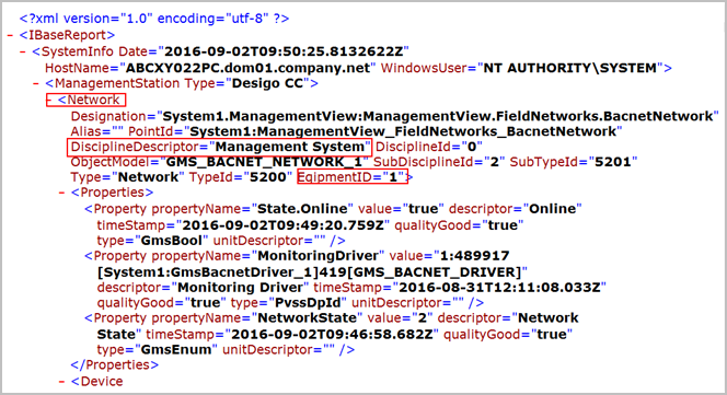 The IBase report is an XML file located on the Desigo CC server station under