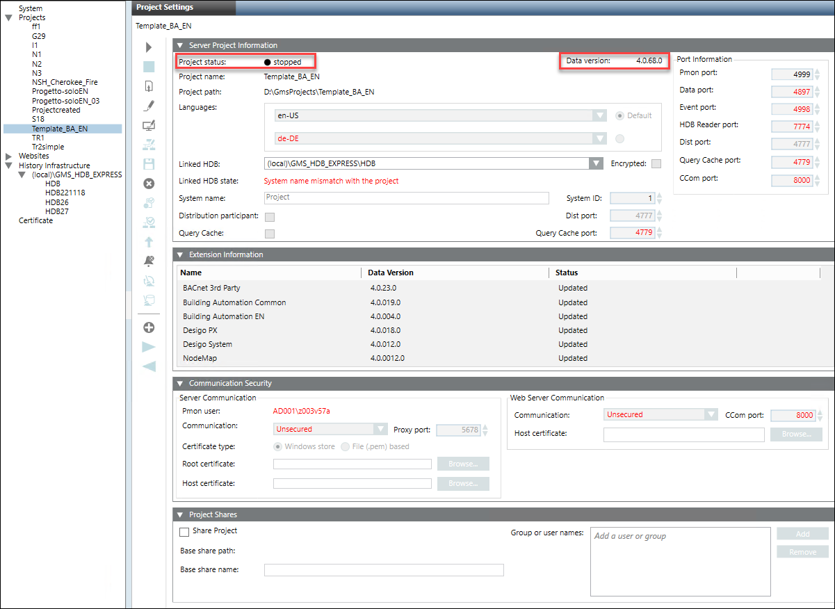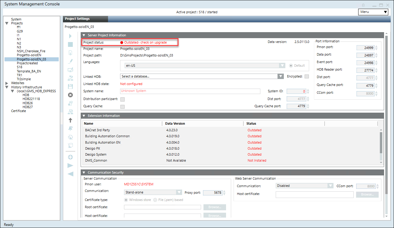 - You have restored the project having Data version earlier than the current Desigo CC setup Data version and in the Server Project Information expander of the Project Settings tab, the Project status is