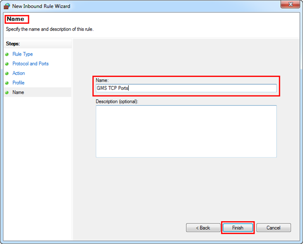 - In the Name field, type the name for this rule. (For example, Desigo CC TCP ports.)