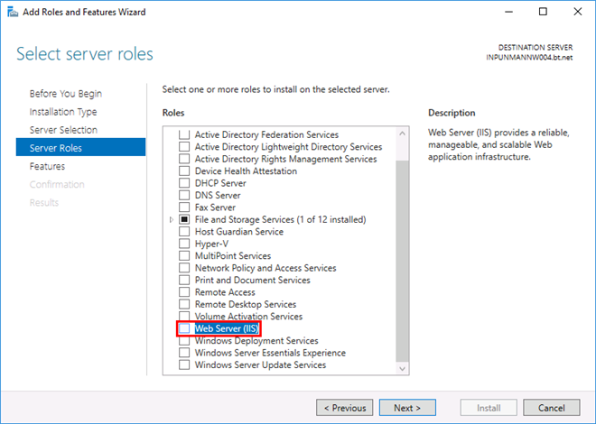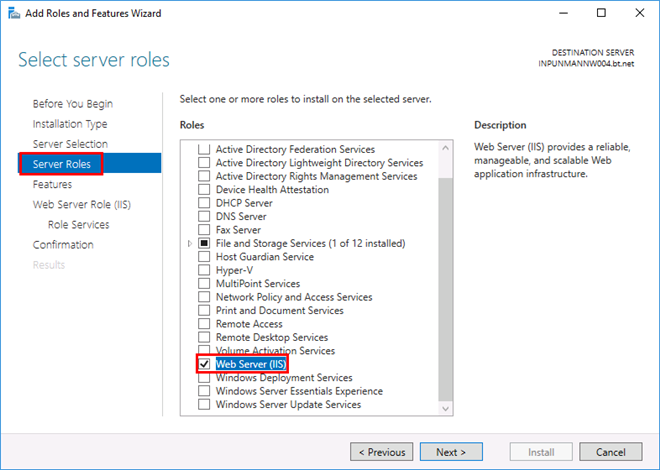 - The Add Roles and Features Wizard dialog box displays.