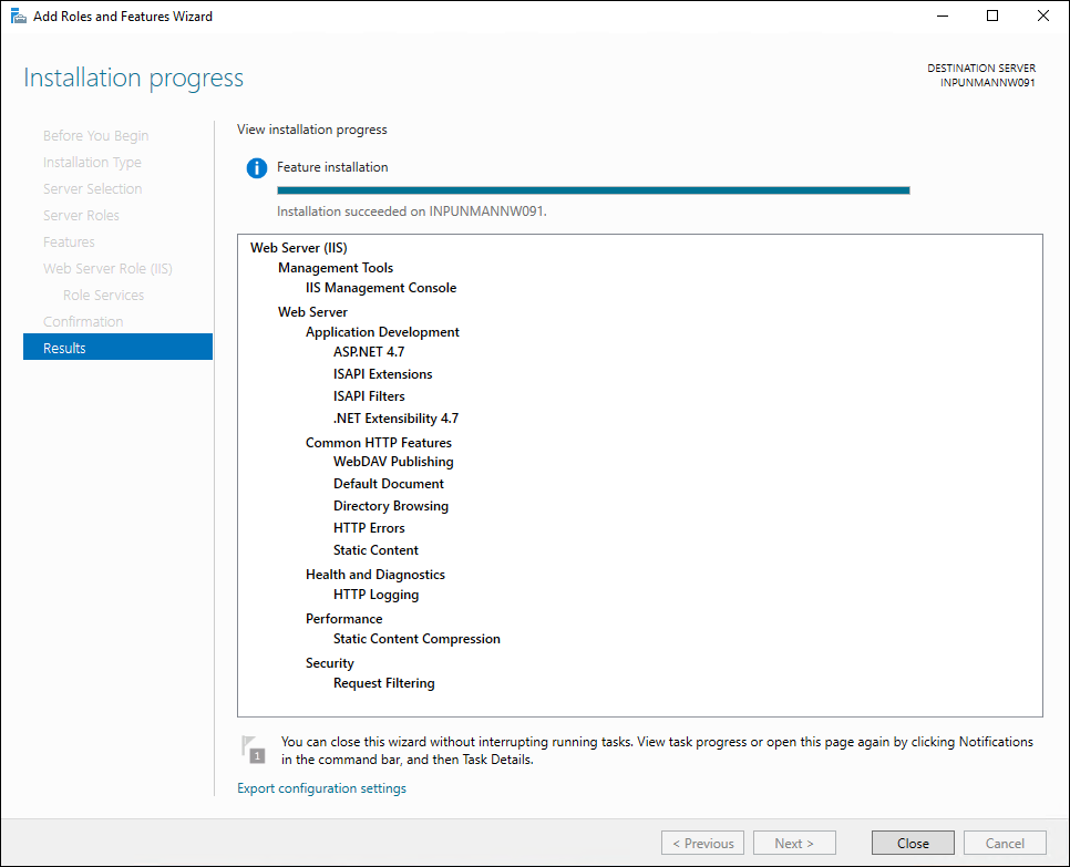 - Click Close.