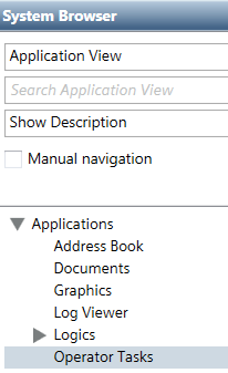 Operator tasks are located in Applications > Operator Tasks in Application View of System Browser.