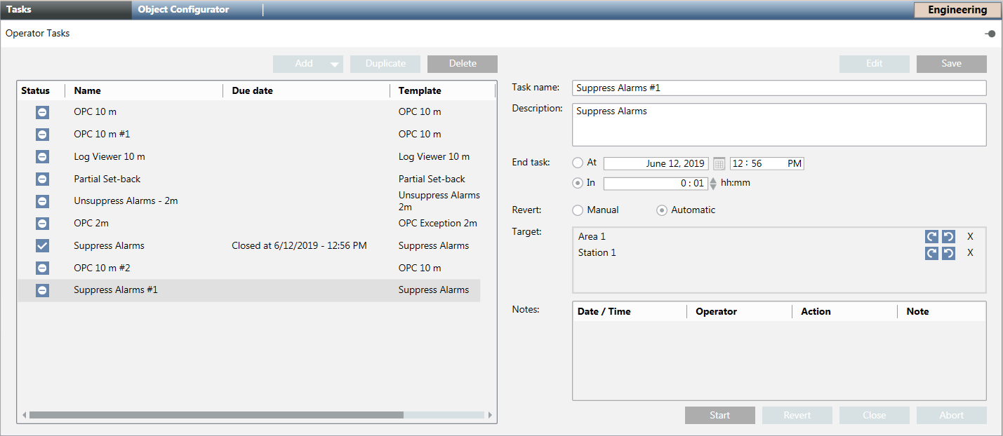 Tasks Editor in Engineering Mode